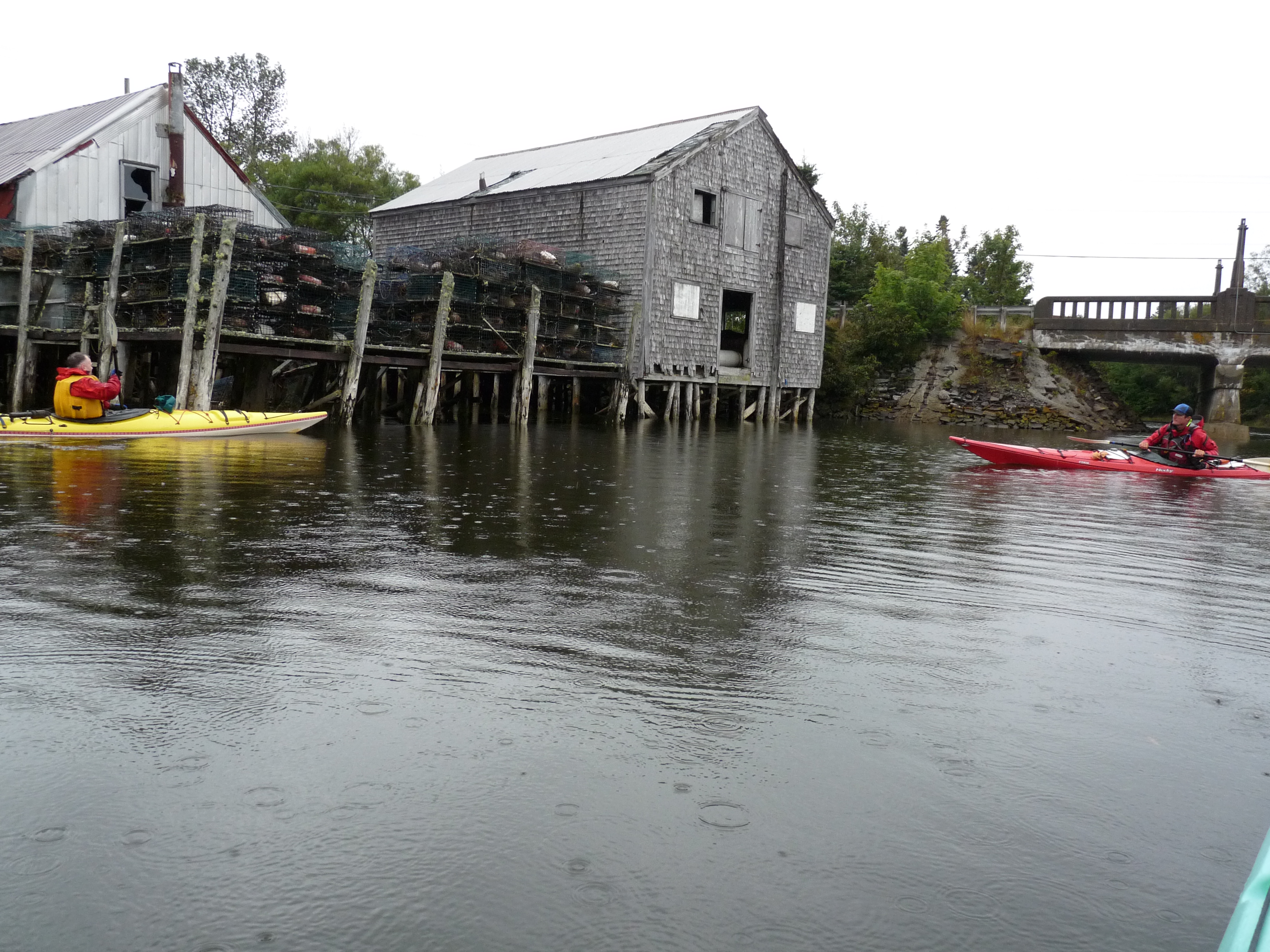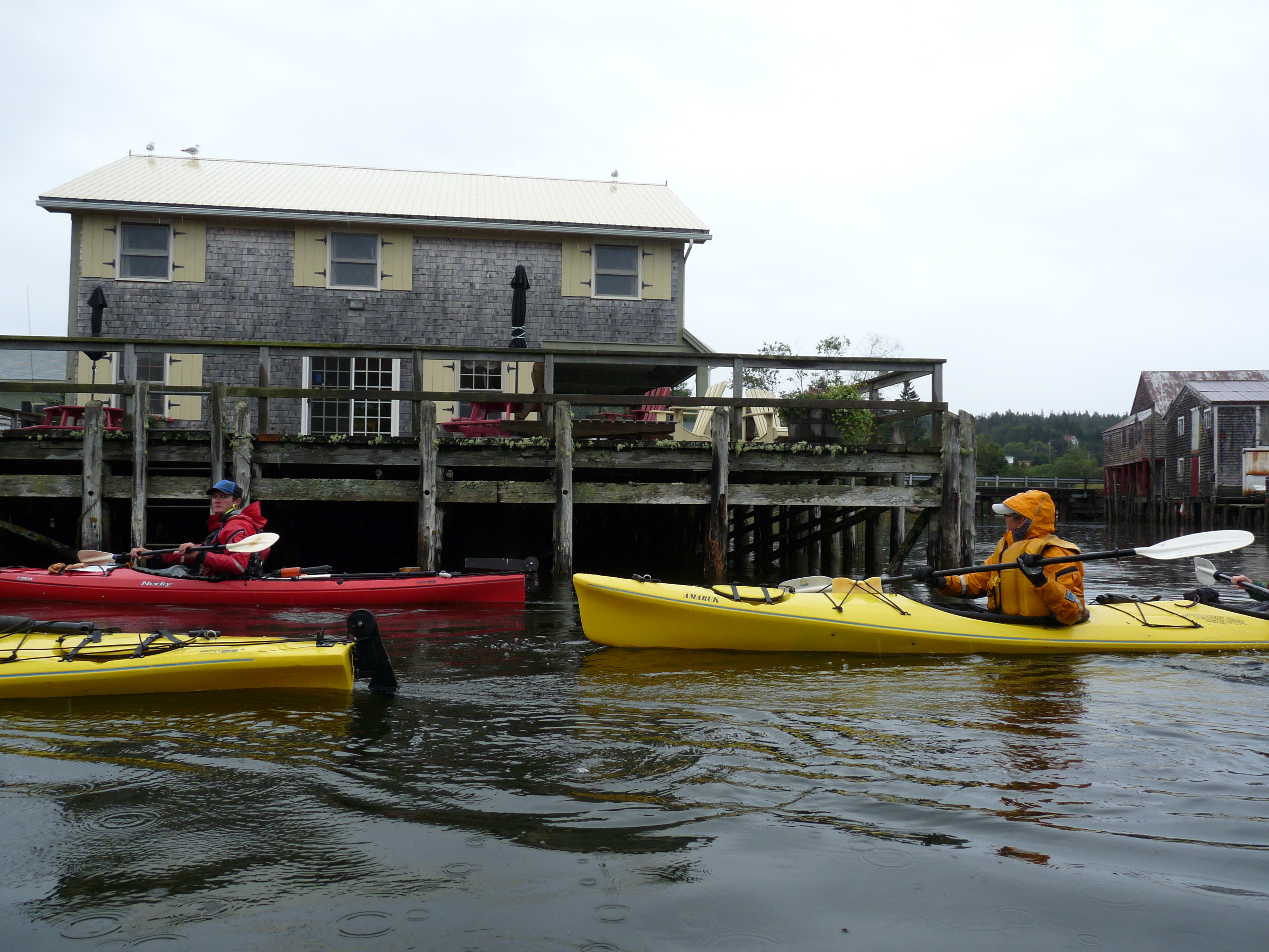 Le kayak de mer est l’une des activités-phare de l’île Grand Manan, au Nouveau-Brunswick. De Seal Cove, j’ai fait une courte sortie matinale avec Adventure High. L’entreprise éco-touristique a son bureau à la sortie du traversier. À Seal Cove, il pleut un peu pour visiter le site historique des fumoirs de harengs et sardines. Nous partons sur l’eau, longeant les cabanes sur pilotis, avec leurs vieux bardeaux de cèdre. Sur les quais sont entassés des casiers à homards. L’une des maisons sur pilotis est un charmant bed & breakfast. On sort du port en groupe avec Ryan pour guide. Plus loin dans la Baie de Fundy, on pratique l’aquaculture pour le saumon de l’Atlantique. Nous longeons une plage. Le temps est frais et la pluie fine mais le vent faible. L’eau est calme. A l’approche d’une falaise, un aigle s’envole au-dessus de nos têtes. Le groupe pagaie jusqu’à une petite pointe de terre qui s’avance dans la baie, en compagnie de deux huards en balade. Sur le chemin du retour, Ryan me parle de ses hivers en Antarctique où lui et Kevin,le patron de l’entreprise, guident des touristes en kayak à partir d’un bateau de croisière de la compagnie Quark Expeditions, basée au Vermont. De quoi rêver de kayak polaire ! En attendant, je me dis que revenir sur l’île Grand Manan l’été prochain pour un reportage sportif (kayak, randonnée, vélo, observation d’oiseaux) serait bien sympa !