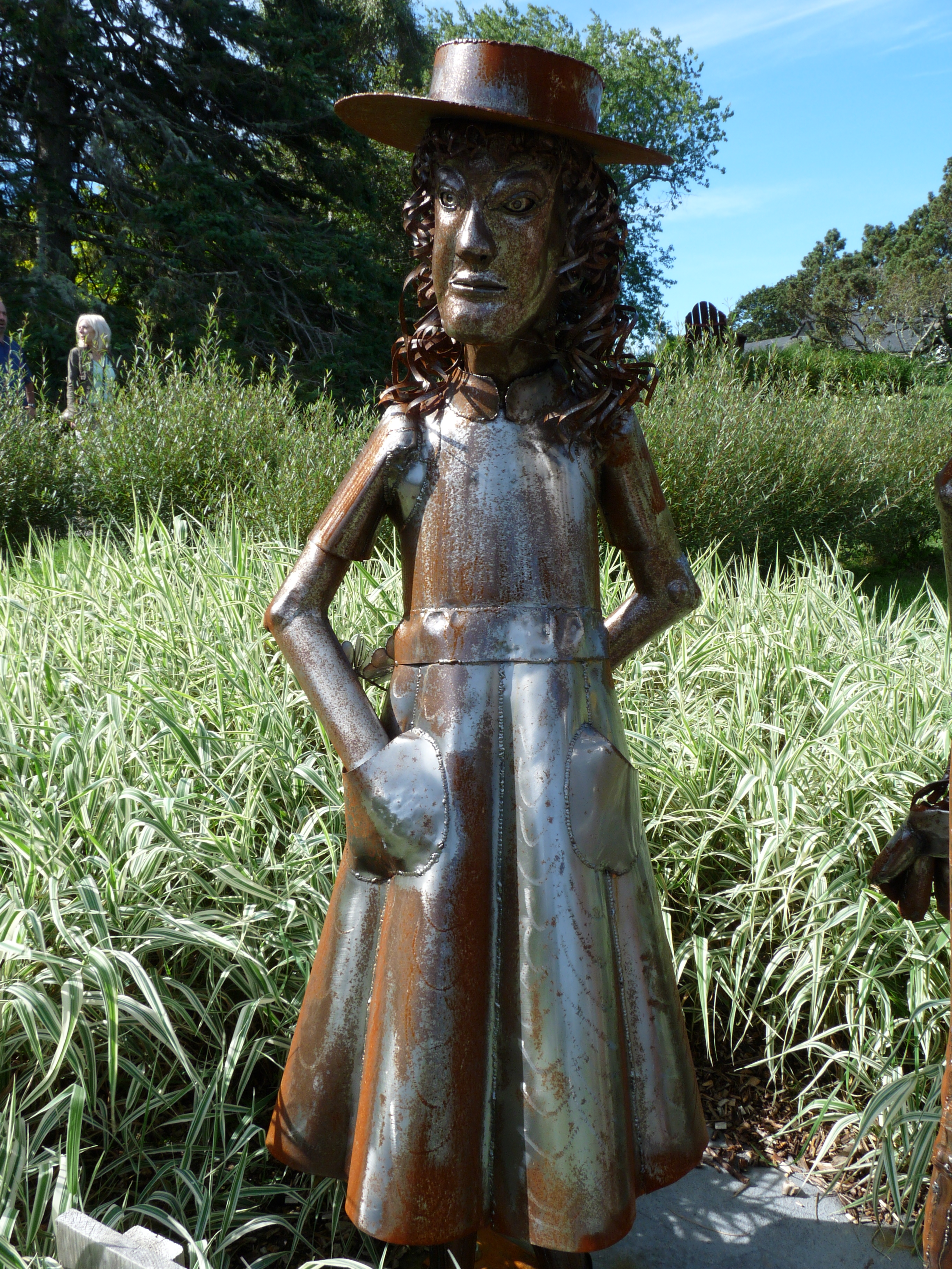 Les visites de jardins ornementaux ne figurent pas parmi mes priorités de voyage mais en voici un que j’ai adoré. Le Jardin Kingsbraer, à St. Andrews, sur la côte de la baie de Fundy (Nouveau-Brunswick) est plus qu’un jardin horticole. Au hasard des plates-bandes, on découvre des sculptures étonnantes. Celles de Don Pell, un artiste de Saskatchewan, m’ont particulièrement plu. En fer forgé, elles comportent toutes un ou plusieurs pots de fleurs. C’est une femme debout ou un cycliste plantés dans un labyrinthe de verdure.
